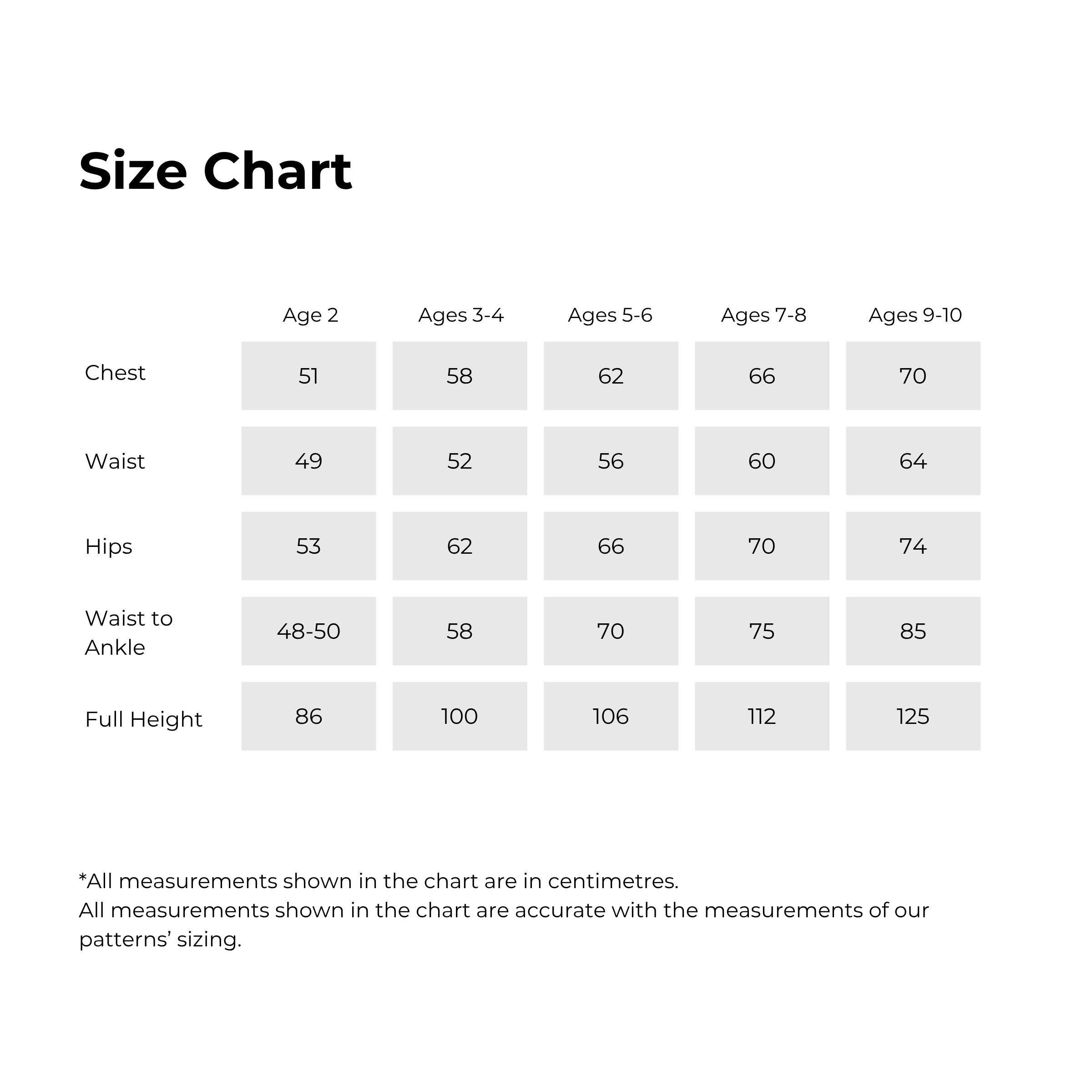"Full height" on our size chart refers to the measurement from the top of your child's head - down to the bottom of their feet (ground).